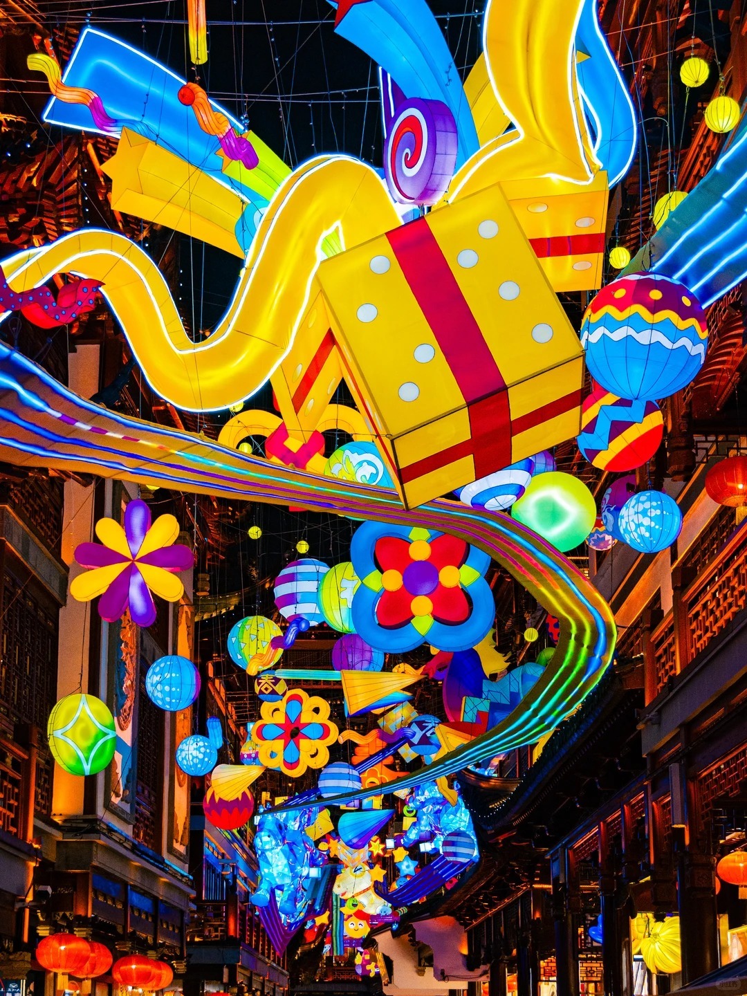 而在南京老門東,蜿蜒的明清街巷為第40屆秦淮燈會披上華裳,穿行其間,宛如在閱讀一部流淌着金陵煙火的光影傳記,美輪美奐。