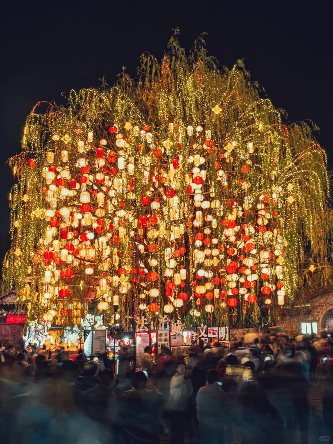 在杭州西溪濕地,映入眼簾的便是猶如辛棄疾筆下「東風夜放花千樹」的夢境,燈火隨蜿蜒水道與石板路蔓延,樹枝上掛滿七彩小燈籠,光影搖曳,瞬間將古詩的意境化為了可漫步其中的現實。