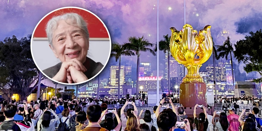 常沙娜也有與「金紫荊」合影嗎?當然有。她在香港回歸後多次訪港,一有空便會到灣仔海傍,看看自己的作品。她說:「作為設計師,我很自豪。」