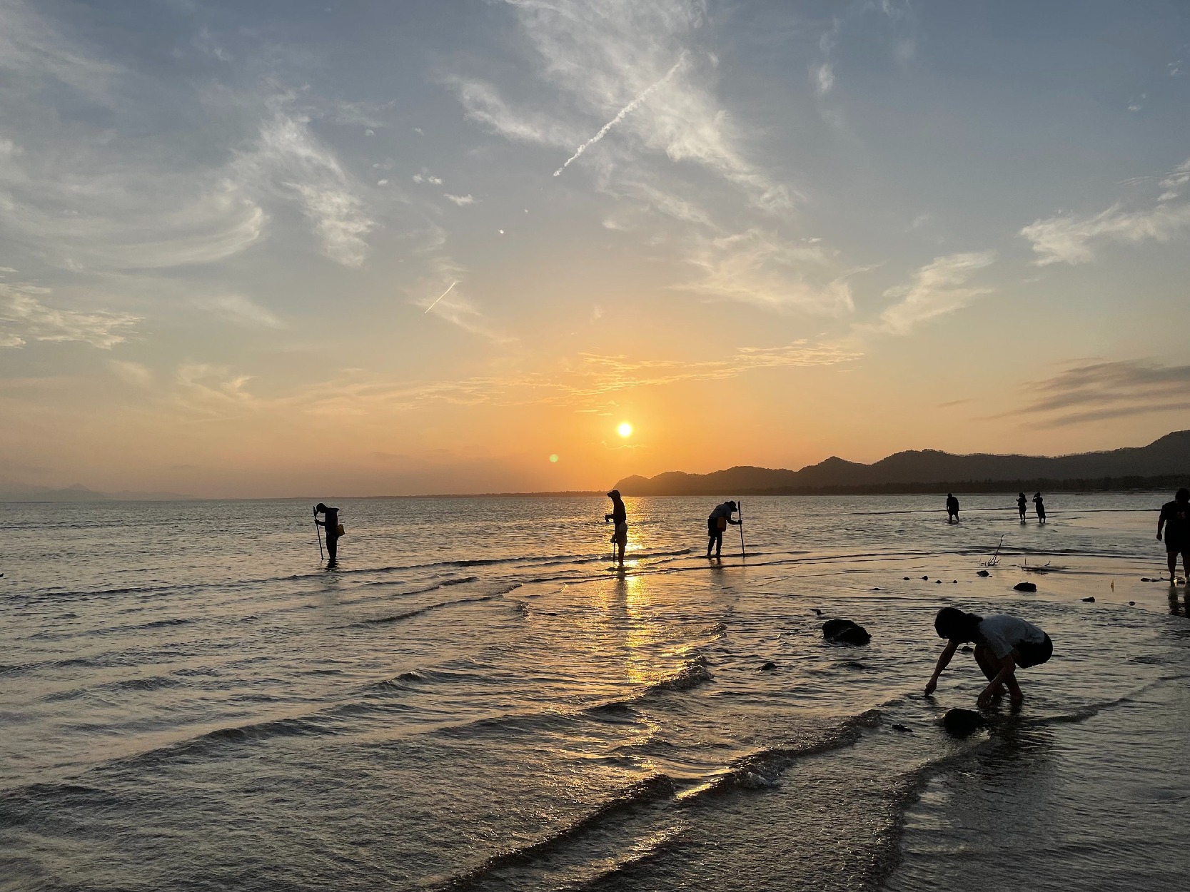 夕陽下漫步沙灘,海面金光閃閃,近岸小艇隨波浪輕輕擺動,拾貝殼的孩子洋溢歡笑,詩情畫意,讓人忘卻煩憂。