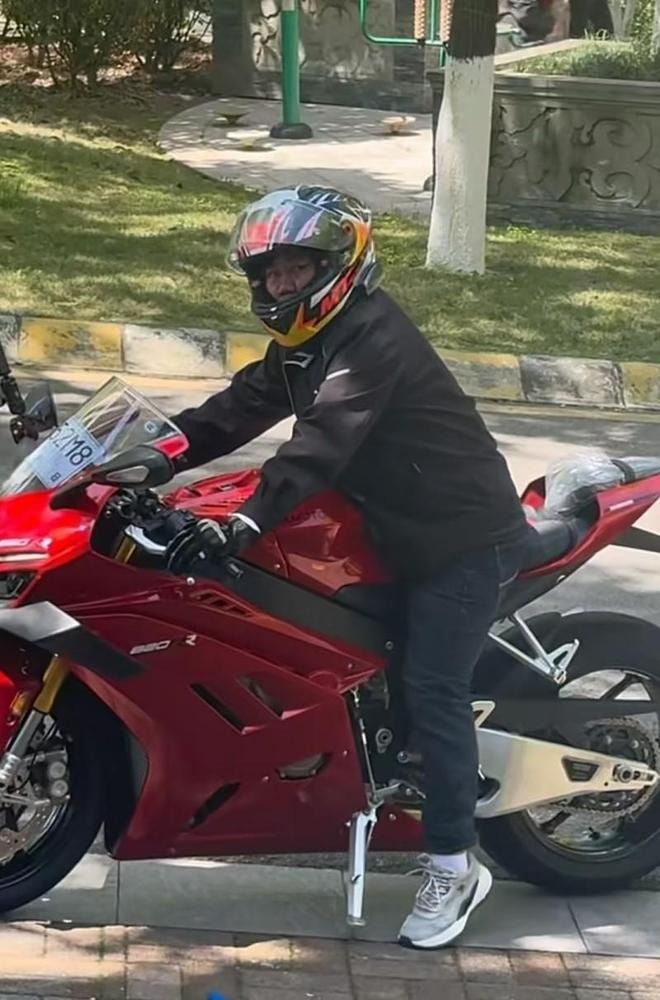 張雪親自試駕自家製造的冠軍車型820RR-RS電單車。
