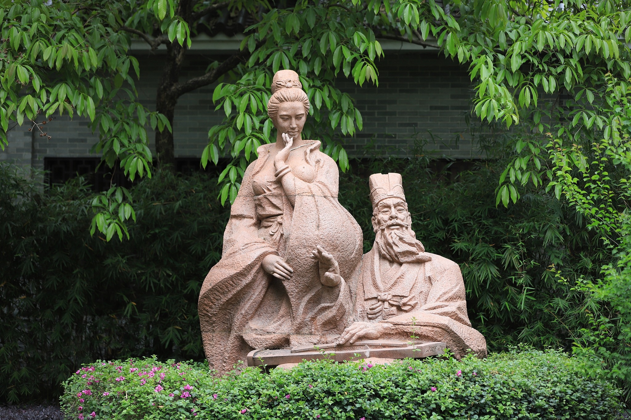 惠州西湖孤山東坡園區的蘇東坡與王朝雲雕像。