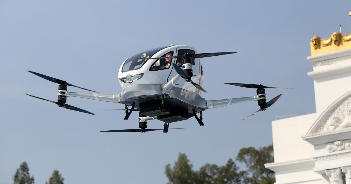 這款飛行器由廣州企業「億航智能」研發,是全球為數不多的載人級自動駕駛飛行器,最大航程是40公里,最大速度可達130公里每小時,能容納兩個人,載重220公斤。