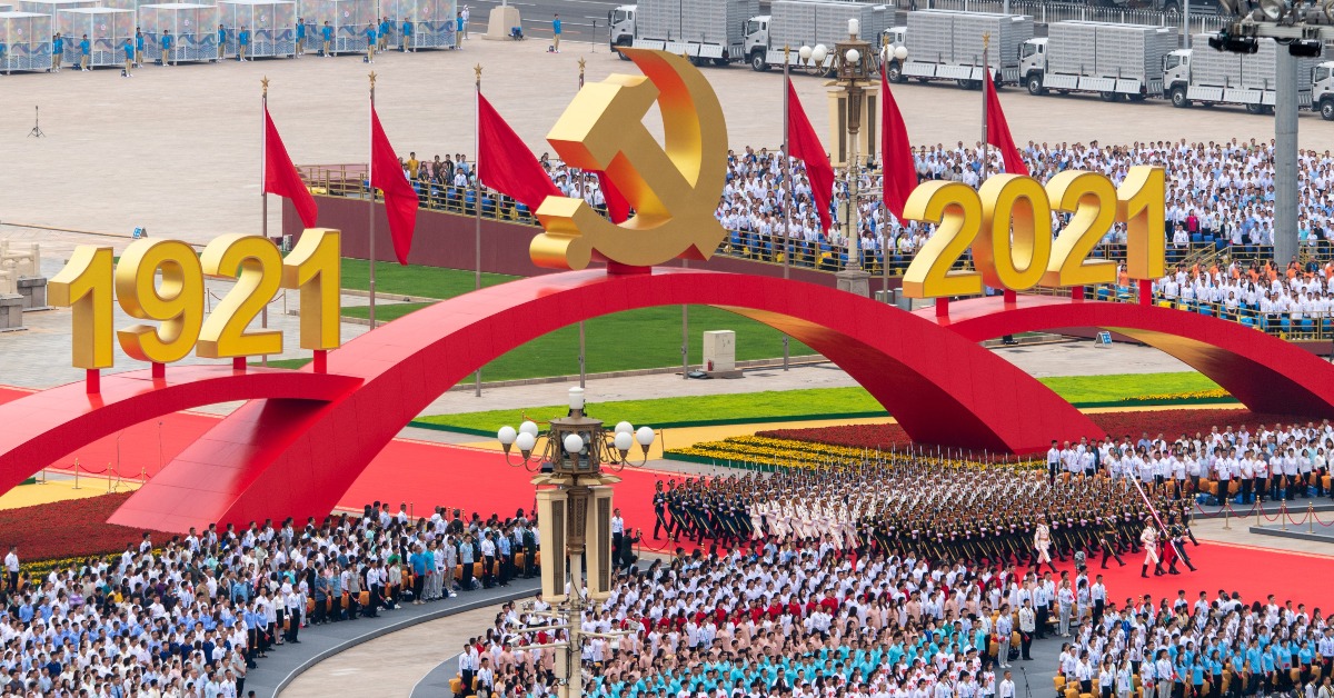 慶祝中國共產黨成立100周年大會,7月1日早上在北京天安門廣場隆重舉行。中共中央總書記、國家主席、中央軍委主席習近平發表講話,並宣告中國完成首個百年奮鬥目標,建成小康社會。大會上,鳴放一百響禮炮,並進行了戰機飛行表演。
