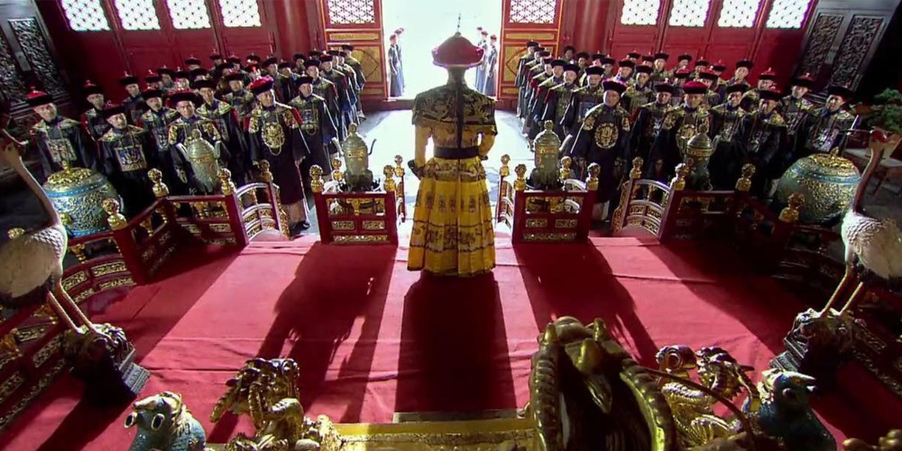 沖製「三清茶」需由兩名宮女處理不同工序,宮女將茶調好之後,主管太監會將皇帝專用的九龍三才杯放在托盤上,雙手托過頭頂,以跪姿敬奉給皇帝。皇帝接過茶後會先喝一口,然後吩咐宮人賜茶給大臣。