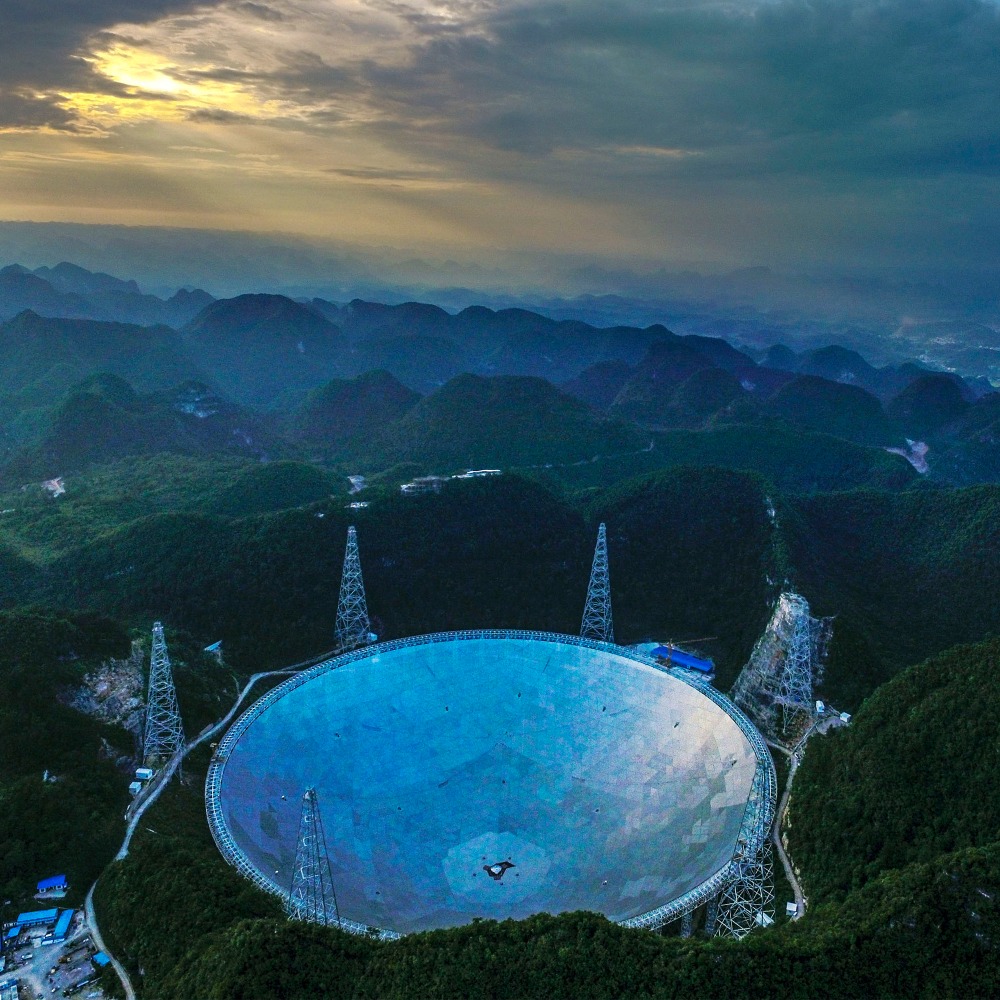 貴州群山之間,鑲嵌著一個30個足球場大小的「大鍋」,看不見的電波滙聚到「鍋底」,帶來宇宙邊緣的資訊。這是被譽為當代中國「超級工程」之一的「中國天眼」——世界最大、最靈敏的500米口徑球面射電望遠鏡(FAST),理論上能接收到百億光年外的電磁訊號,主要用於觀測脈衝星,探索外星文明等。當代中國科學家用了20多年時間,讓中國在這一領域「從無到有」,躍居世界領先水平。