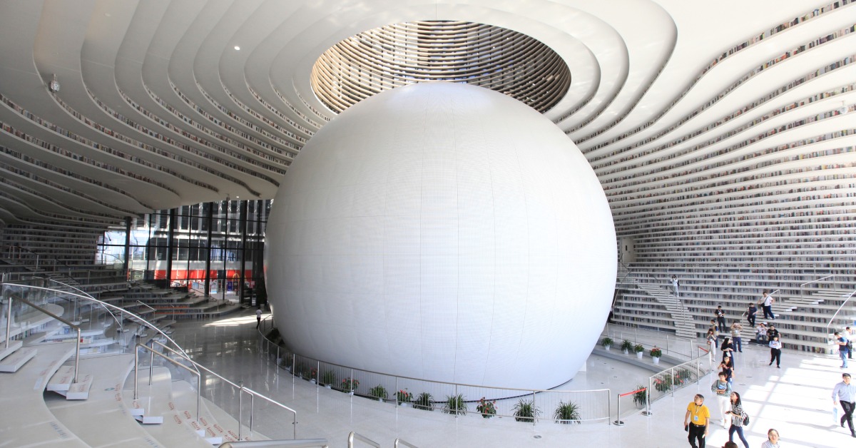「濱海之眼」內藏「書山」 破格的「天津濱海圖書館」