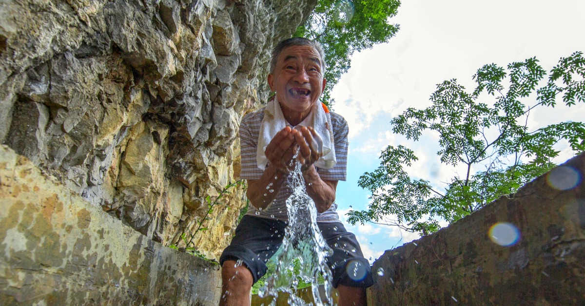 黃大發所在的草王壩村,山高崖陡,是典型的喀斯特地貌。雨水落地,立刻就順着空洞和石頭縫流走了,很難儲存下來。距離村子幾公里外有充沛水源,但是偏偏高山又成了中間的阻礙。村民去擔水,來回需步行兩個小時。為了省水,村民第一遍水淘米洗菜,第二遍洗臉洗腳,第三遍喂豬喂牛,就連種地也只能種一些耐旱的粟米,生活非常艱苦。