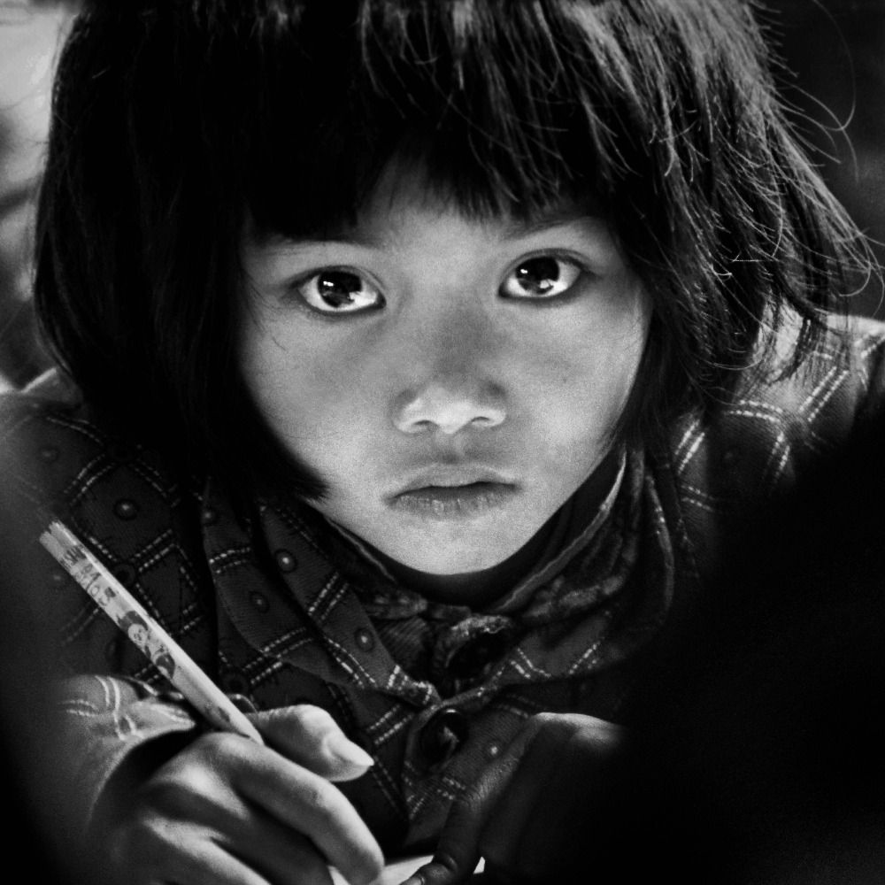 90年代初,攝影師在安徽省一間破校舍裏,拍下手握鉛筆的小姑娘,她一雙清亮眼睛,展現出對知識的渴求,感動千萬人心,成為希望工程象徵。短短幾年已籌得近4億元人民幣,超過100萬名學童因而得到上學的機會。