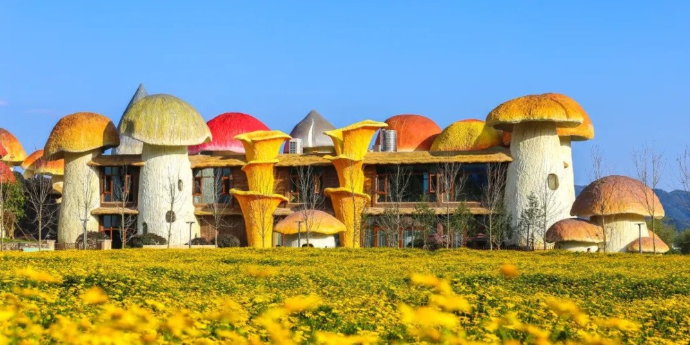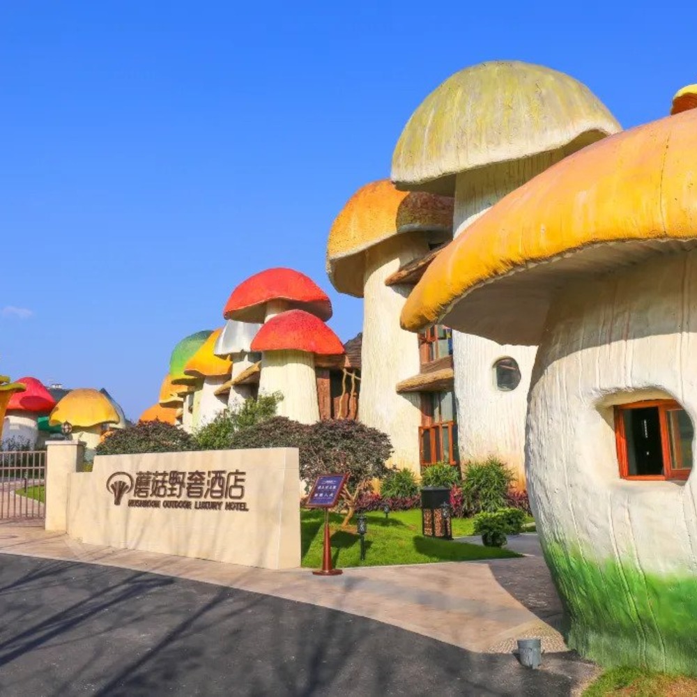 在2018年開幕的貴州興義蘑菇野奢酒店,距離市區約5公里,佔地面積約320餘畝,分為至尊區及主題區,有逾百間客房。它與霓虹滿布的都市酒店大有不同,其中酒店外觀以貴州興義市特產野生菌雞縱、紅菌、牛肝菌及青頭菌等為元素,設計主題以野生蘑菇形態為主,步入酒店園區,女士們必定驚歎「太可愛吧」!
