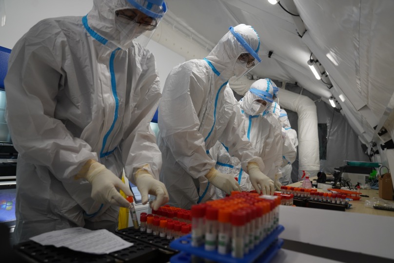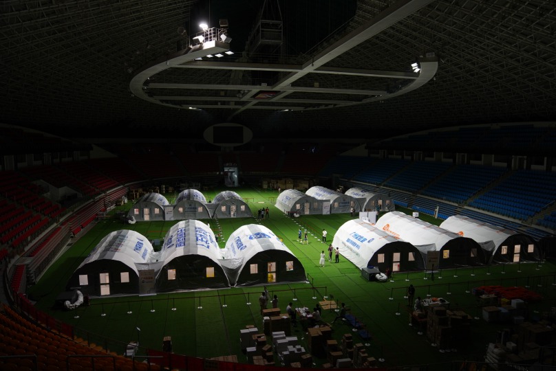 由鍾南山博士領導的廣州實驗室、國家呼吸中心和金域醫學迅速建成廣東首個「獵鷹號」氣膜方艙實驗室,協助廣州完成全球最大規模的核酸檢測。