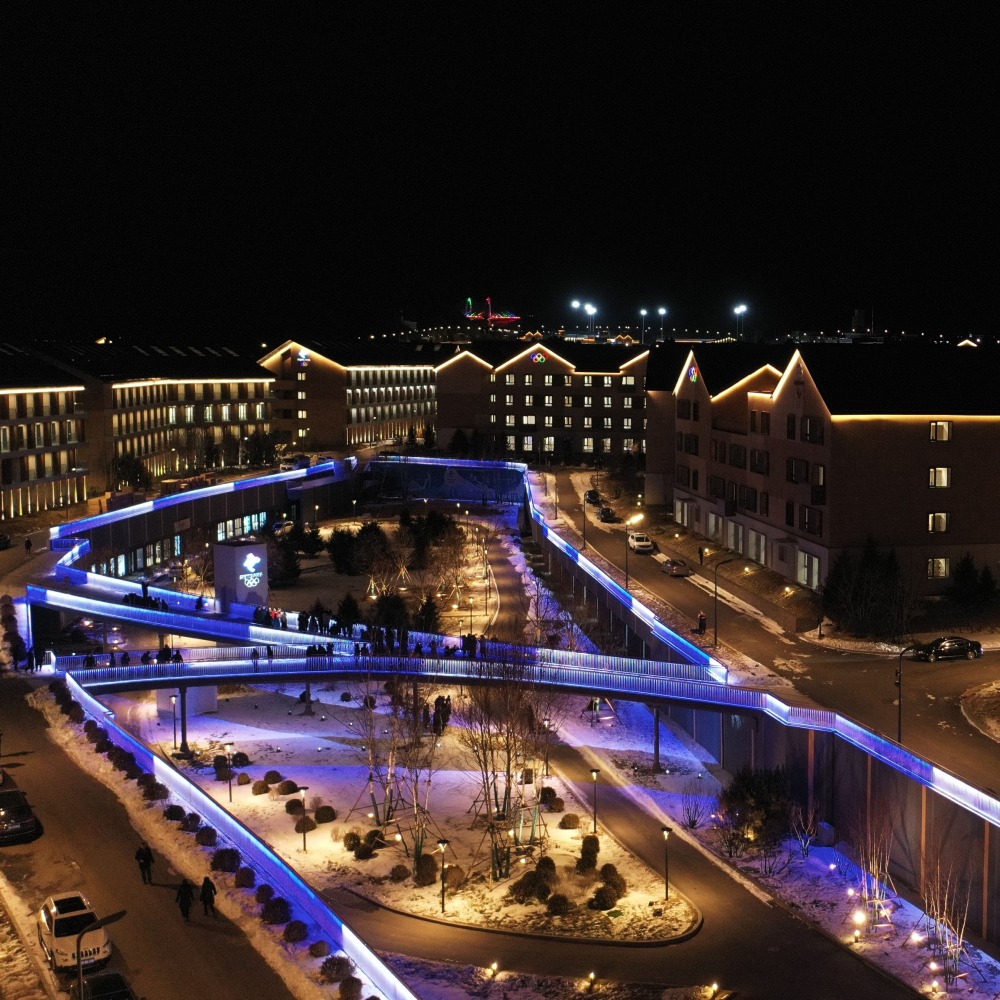 整個張家口冬奧村就好比是一個「家」,涵蓋了吃、住、行、娛各個環節,讓運動員白天進行比賽,晚上可以在此休息休閒。張家口冬奧村內1,400平方米的代表團接待中心和媒體訪客中心正是「家」中的「大門」,敞開迎接四海賓客。31棟運動員公寓就好比是家中的「臥室」。而運動員的共享空間就是「客廳」,運動員和其團隊可以在此購物、娛樂、休閒,諸如特許商店、便利店、咖啡廳、銀行、郵政、美容美髮、傳統文化展示中心等應有盡有。除此之外,家中少不免要有「廚房」,冬奧村的「廚房」正正就是5,225平方米的餐廳,運動員和相關人員可以在此享用營養豐富、款式多樣的美味。另外,張家口冬奧村內還有15,000平方米的停車場,停泊着眾多大巴以接載運動員們往來場館進行比賽。