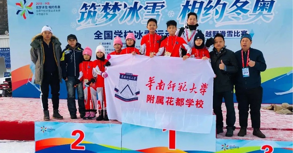 學校與廣州一家滑雪俱樂部合作,在校內添置訓練滑坡和模擬滑雪機,為學生提供模擬滑雪訓練,很快便看到成績。2019年在吉林長春舉行的全國學校冰雪運動競賽中,花都華附的男子、女子小學組分別奪得800米越野滑雪比賽第8名。這一年,花都華附被評為首批全國青少年校園冰雪運動特色學校。
