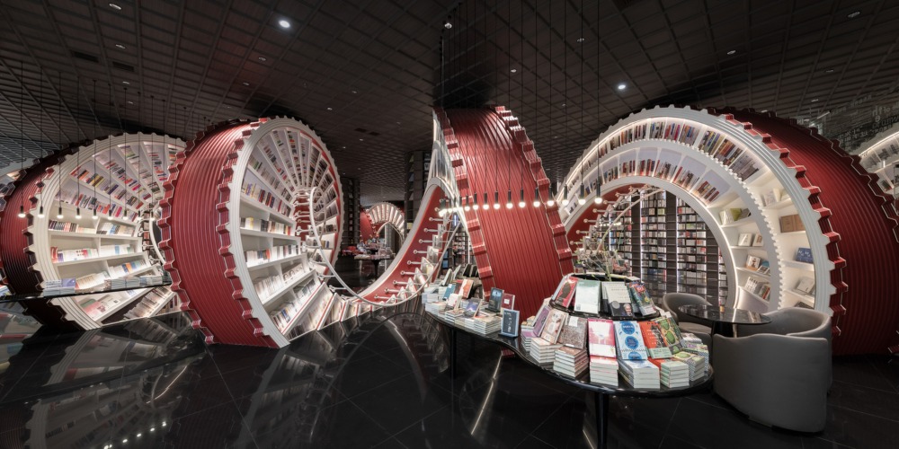 巨型紅色螺旋書架如時鐘錶盤 深圳鍾書閣展現城市色彩