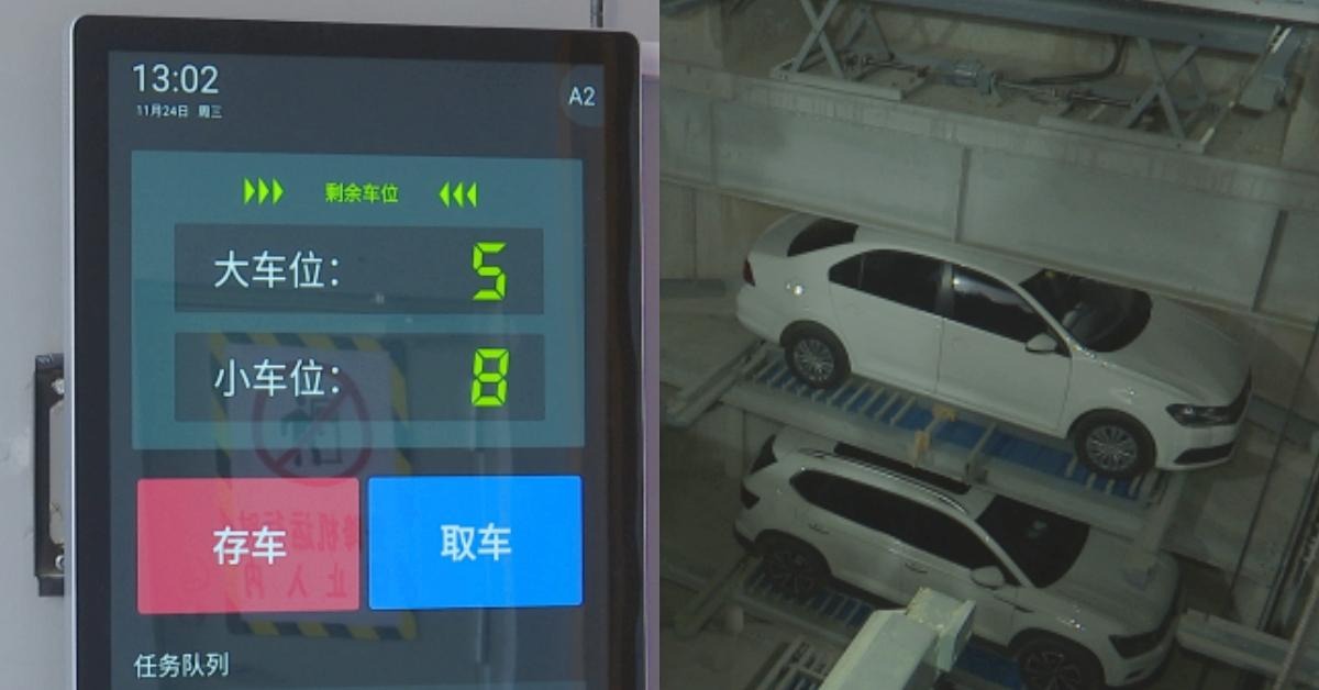 車庫外面放置了智能顯示屏,泊車時點擊「存車」,車庫門會自動升起,車主將車輛駛入傳送台後,下車等待即可,系統能自動尋找空置泊位和存取汽車。由於車庫內安裝了十幾個傳感器,如果出現車門沒關好、人還在車上等特殊情況,傳感器都會感應到,不會將車移至升降台。