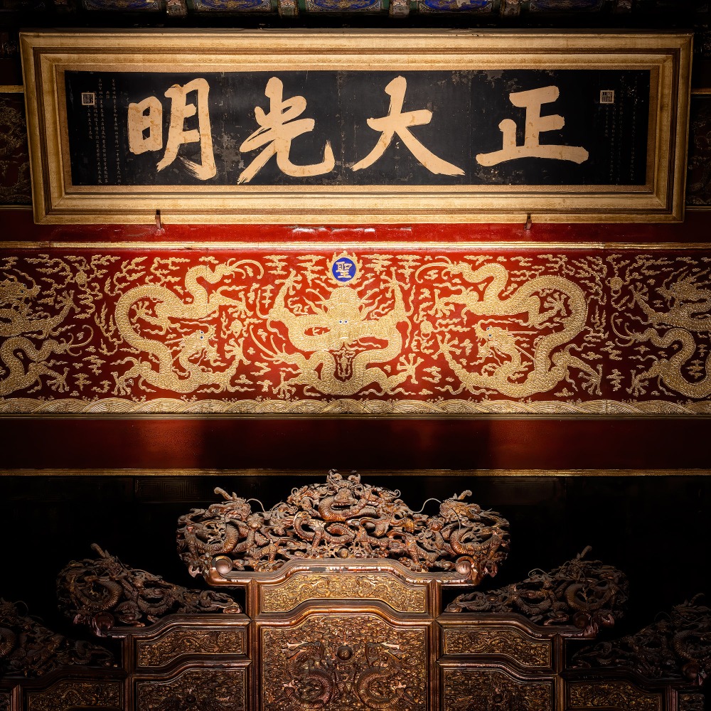 故宮乾清宮的「正大光明」匾額,相傳是清朝雍正帝存放立儲密折的地方,每年冬至日前後,正午12時,「正大光明」匾額會被金光點亮,大放光明,隨着光線變化,匾額下的五條金龍也依次發出金色的光芒,非常神奇。