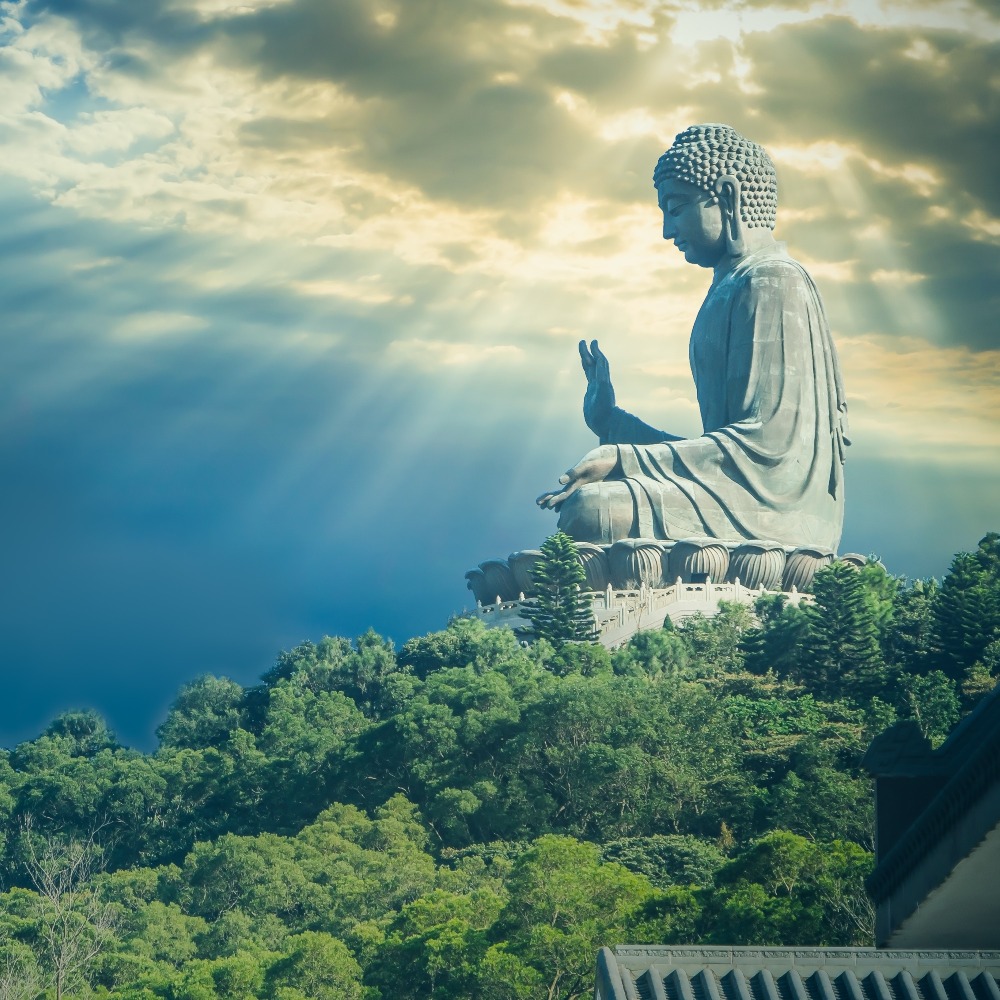 天壇大佛坐落在海拔482米的大嶼山木魚峰上,是香港的地標建築之一。
