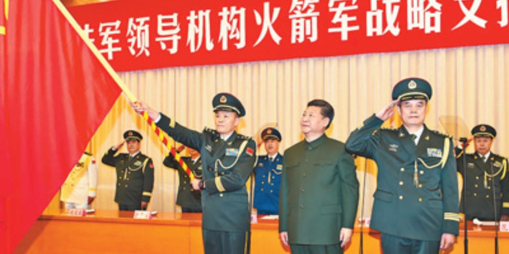 2015年12月31日,中國人民解放軍陸軍領導機構、中國人民解放軍火箭軍、中國人民解放軍戰略支援部隊成立大會在北京八一大樓隆重舉行。中共中央總書記、國家主席、中央軍委主席習近平向陸軍、火箭軍、戰略支援部隊授予軍旗並致訓詞。
