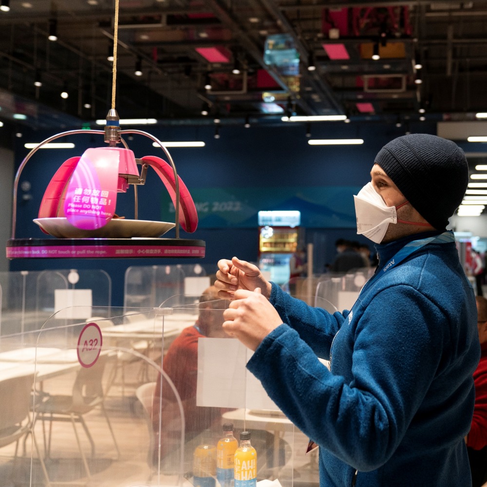 北京冬奧餐廳空中傳送美食 疫情防控減少交叉接觸