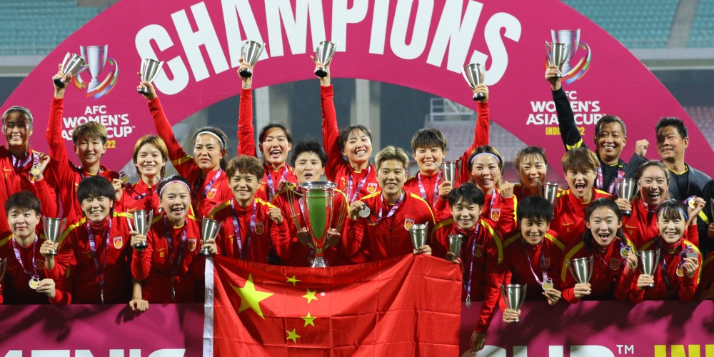 2月6日,中國女足在印度舉行的2022年女足亞洲杯決賽中以3:2戰勝韓國隊,這是中國女足第9次奪得亞洲杯冠軍,也是她們時隔16年再次站上亞洲之巔。女足球員們展現了頑強拼搏、永不放棄的精神,獲勝消息在網絡上洗版,舉國歡呼。