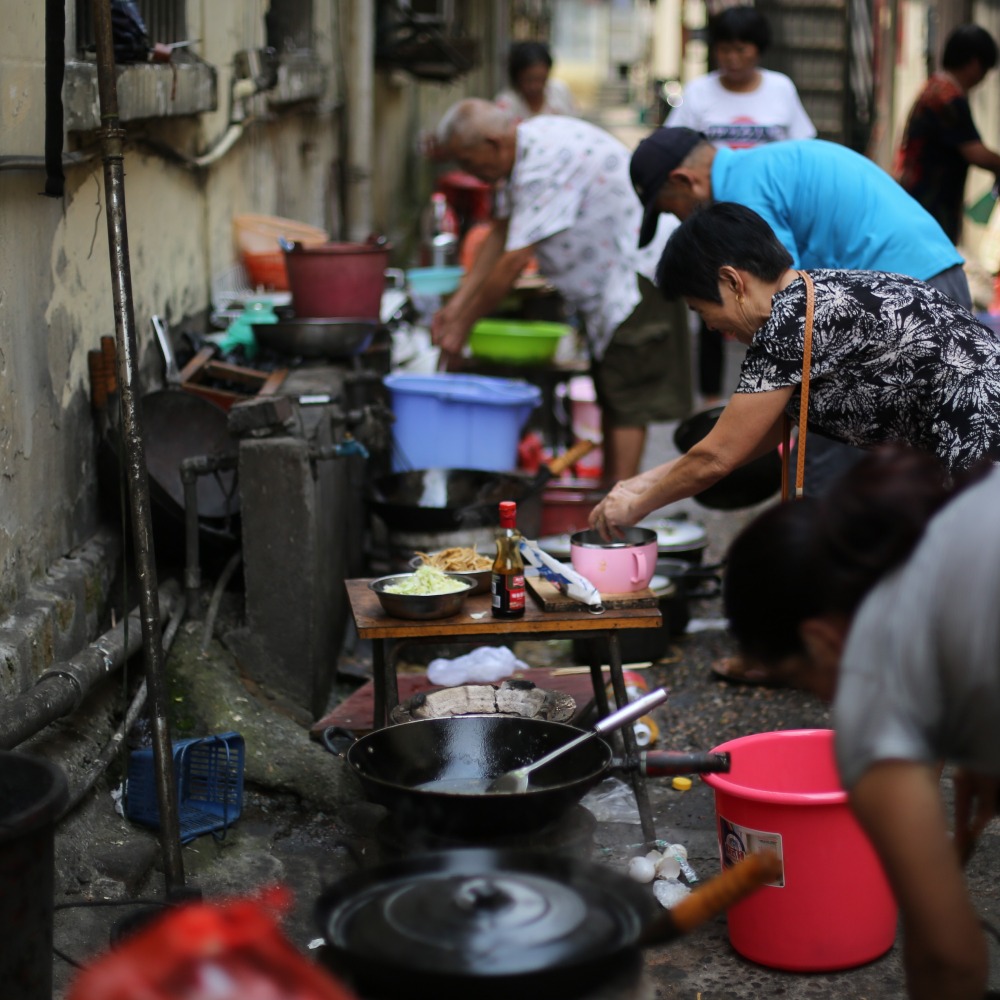 這間廚房與江西省腫瘤醫院只有一牆之隔:狹窄的露天巷子裏,30多個煤爐和炒鍋一路排開,簡陋的灶台上擺着各式調料。這個廚房全天24小時運作,只需支付一元錢,就可以自由使用爐灶、水電和炊具。