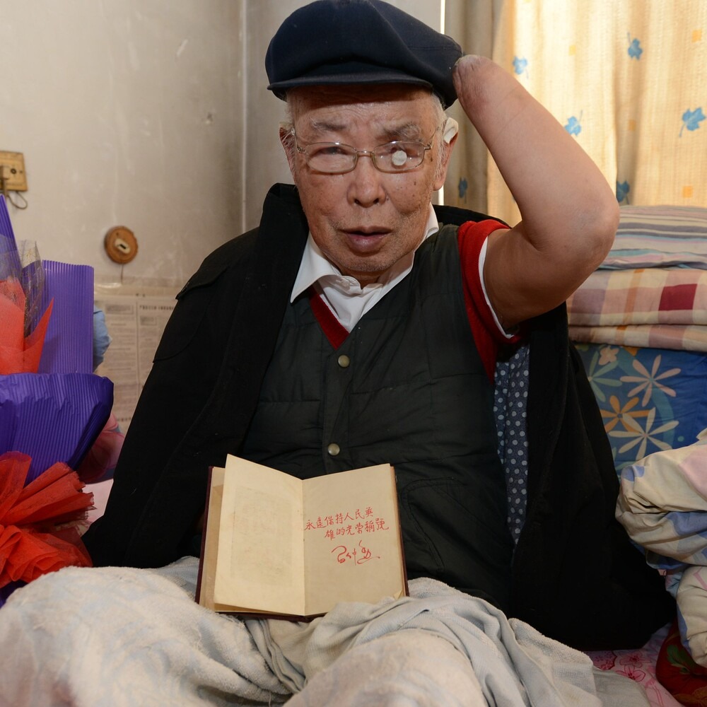 當然,朱彥夫用意志克服了這一切。他拿着字典不斷學習,又拿着筆一字一字地寫,用了7年時間完成了《極限人生》和《男兒無悔》兩部自傳體小說;這兩本書均已出版,故事感動了萬千讀者。