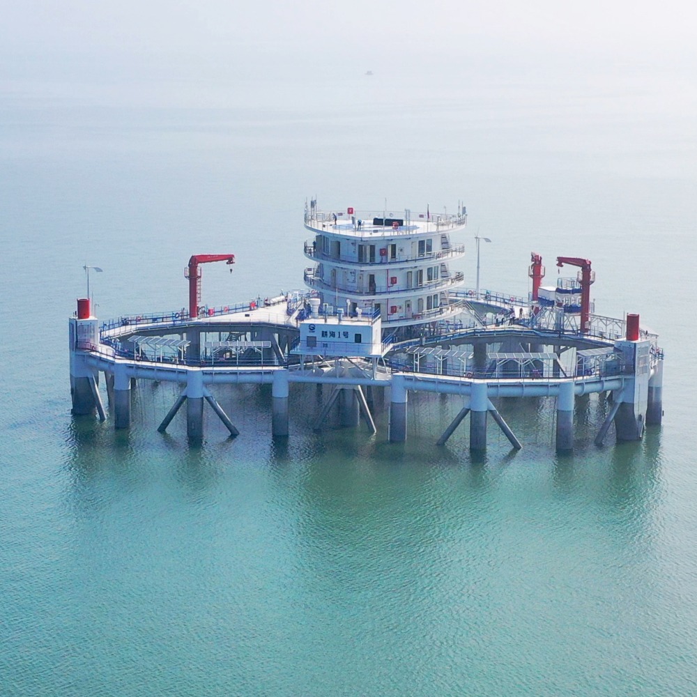 此外,傳統的小規模網箱很難抵禦自然災害,一場風暴就會將其摧毀。相比之下,「耕海一號」重達3,000噸,相當於5架客機,海底設有3根鋼柱,將整個平台穩穩地立在海面上,這種坐底式結構就好像在海面上建了一座房子,就算12級颱風來襲,也可紋絲不動。