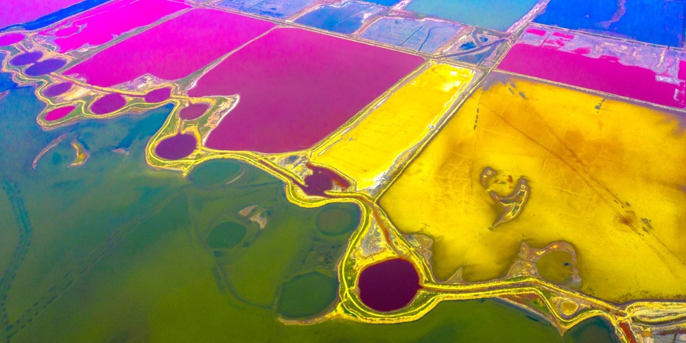 運城鹽湖仿佛倒翻的調色盤 色彩絢麗如畫如夢