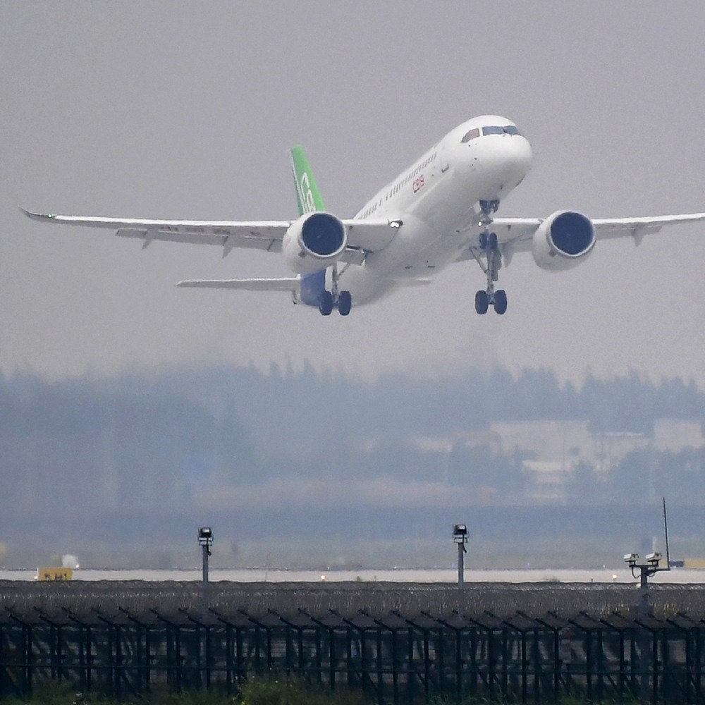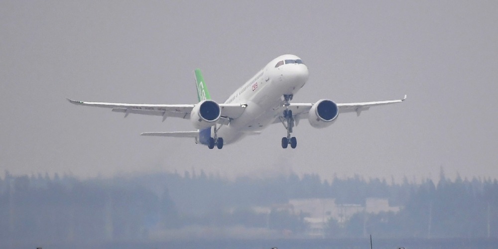 C919是中國自行研製、具有自主知識產權的大型噴氣式客機,客機國產率達到60%,載客量為158到168座,座級屬於目前市場主流機型。第一架C919在2015年11月完成總裝,之後在2017年5月5日首飛成功。由2019年起,6架C919在上海、閻良、東營、南昌等地,開展了一系列的地面試驗和飛行試驗。現時,C919大飛機項目正在推進試飛取證和交付準備工作。