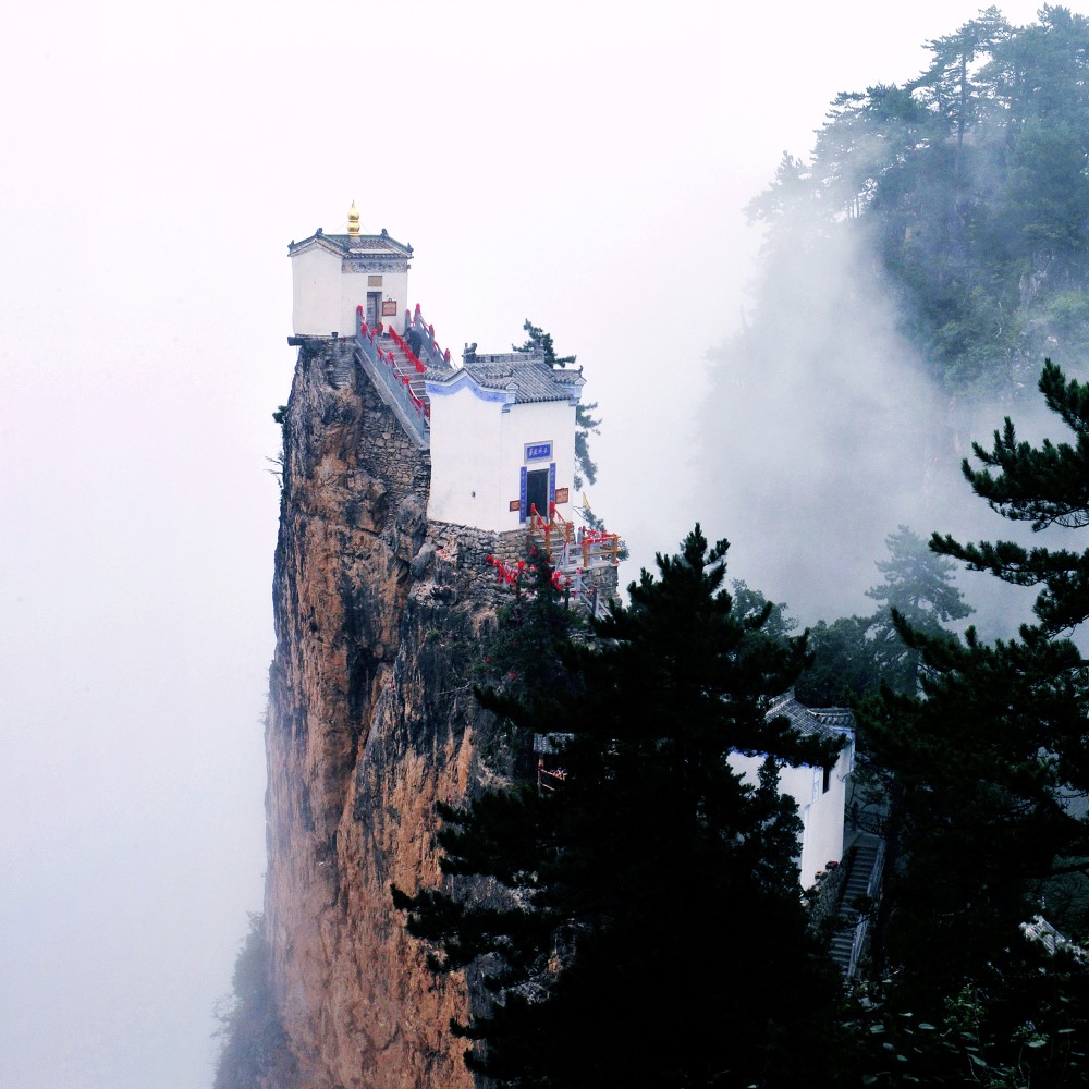當中最出名的,就是坐落於主峰金頂上的觀音殿,面積不足6平方米,只有一條小路通往山下,其餘三面都是萬丈懸崖,遠遠望去,搖搖欲墜,好像隨時會被山風吹倒,因此被譽為「天下最險道觀」。