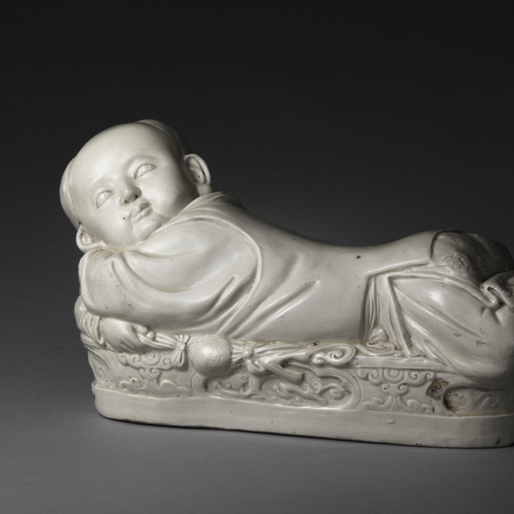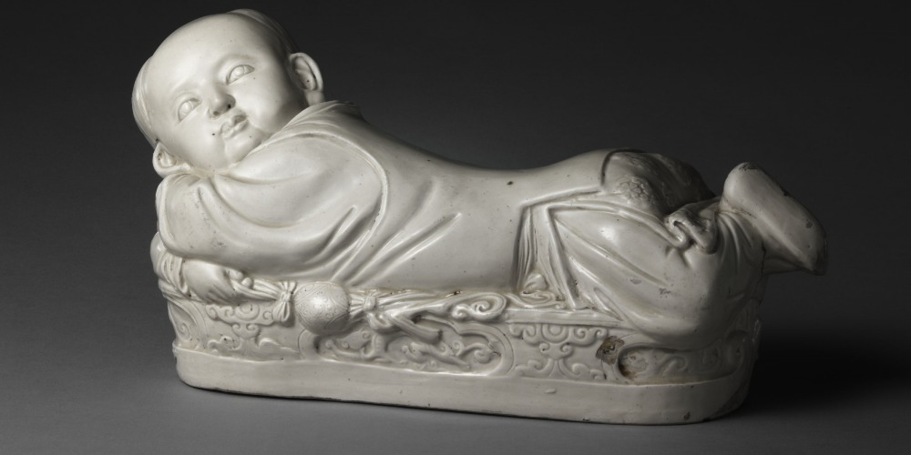 白釉孩兒枕 河北定窯