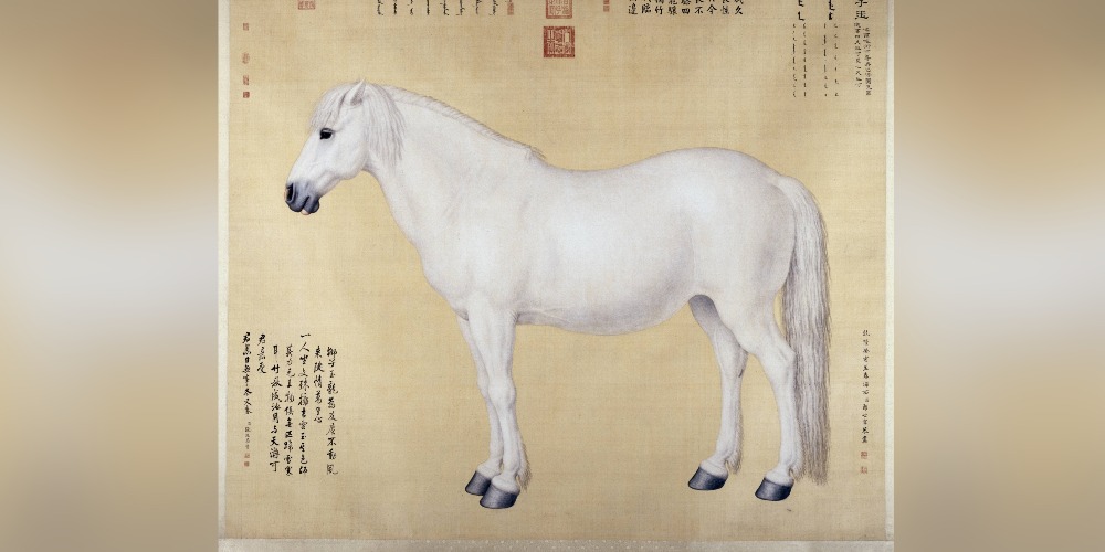 乾隆帝吟詠道:「白馬我久乘,馴良性已諳。於今齒加長,不能備六驂。四蹄憶龍驤,雙耳猶竹篸。向我臨風嘶,無邊感慨含。」