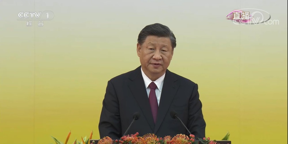 習近平在講話中表示,香港回歸祖國,開啟了香港歷史新紀元。 25年來「一國兩制」實踐在香港取得舉世公認的成功。回歸祖國後,香港在國家改革開放的壯闊洪流中,發揮連接祖國內地同世界各地的重要橋樑和窗口作用;戰勝各種風雨挑戰,穩步前行,無論是國際金融危機、新冠肺炎疫情,還是一些劇烈的社會動盪,都沒有阻擋住香港行進的腳步;香港同胞實現當家作主,制定香港國安法,修改完善香港選舉制度,確保了「愛國者治港 」原則得到落實。
