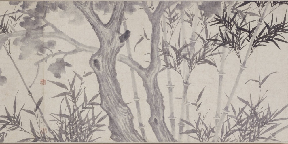 此卷用筆爽利,秀雅簡潔,以濃淡分明的墨色表現出竹的層次。李衎傳世作品多為立軸,長卷則少見。本卷原作繪「四清」,即竹、蘭、石、梧桐。本展品為原作的後半段,前半段今存美國納爾遜—阿特金斯藝術博物館;故宮段除延續前段的操筀外,尚繪有石、蘭、梧桐,後有李衎自題及周天球題跋。原作構圖可分為三段,各見竹林一角、草木繁盛之景。