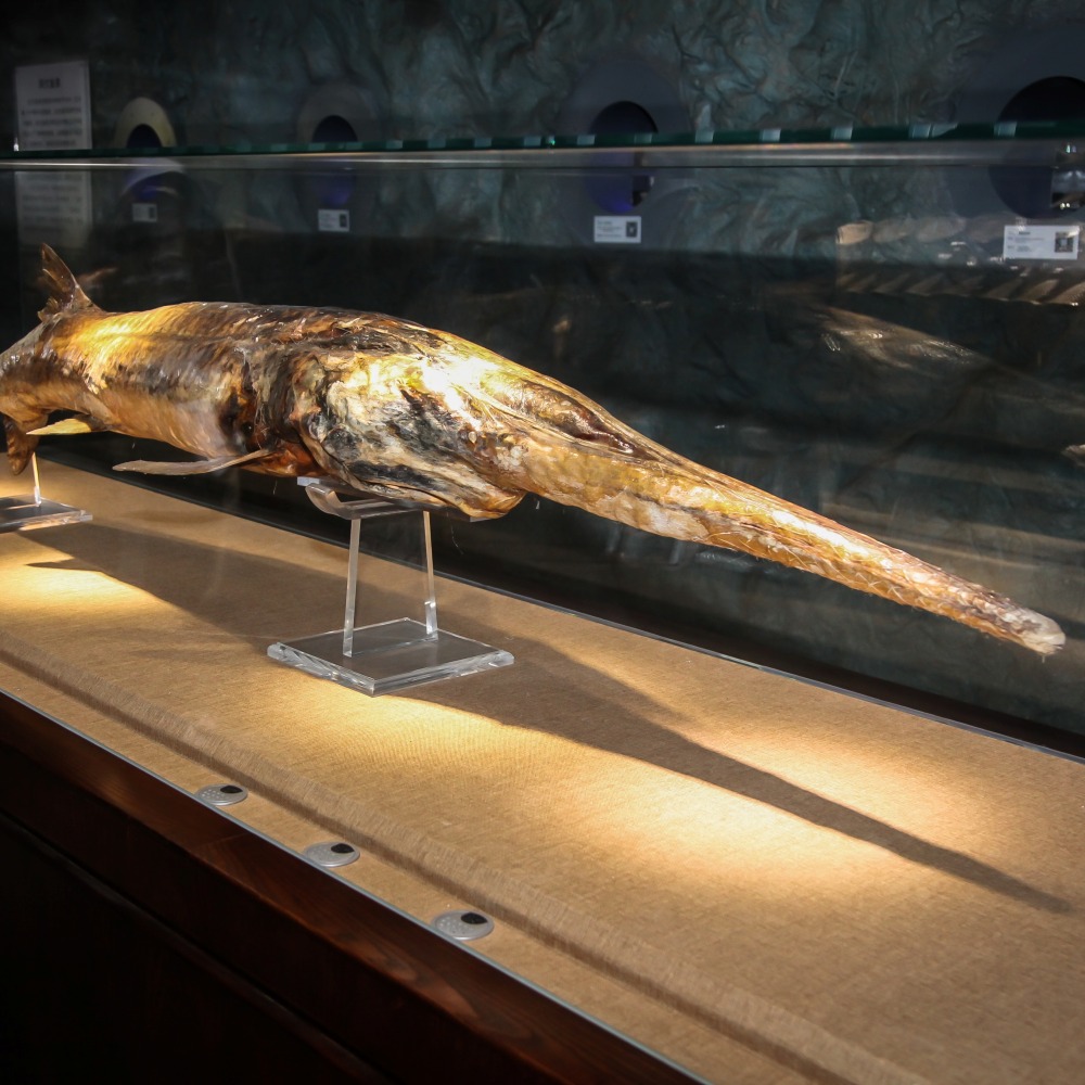 長江白鱘與中華文明有頗深淵源,2000多年前的《詩經》如此記載,「有鱣有鮪,鰷鱨鰋鯉。以享以祀,以介景福」。「鮪」即是長江白鱘的古稱。此外,《禮記》描述周天子春季祭祀宗廟時,也有提到過長江白鱘,「天子始乘舟,薦鮪於寢廟」。