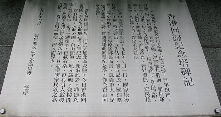 九七回歸,在大埔建成的香港回歸紀念塔,正是紀念當年一班奮戰抗英、保衛香港的鄉民。