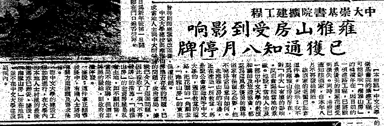 中文大學擴建 一度影響雍雅山房經營