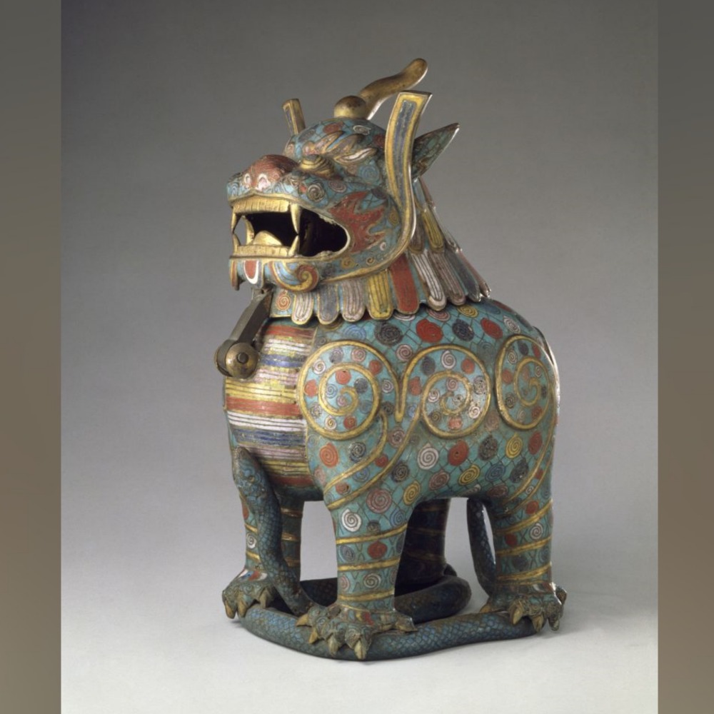 目前來看,掐絲琺瑯甪端的製造始於明萬曆年間,是為斷代依據之一。該甪端將典章陳設和實用熏香為一體,具有多種功能。
