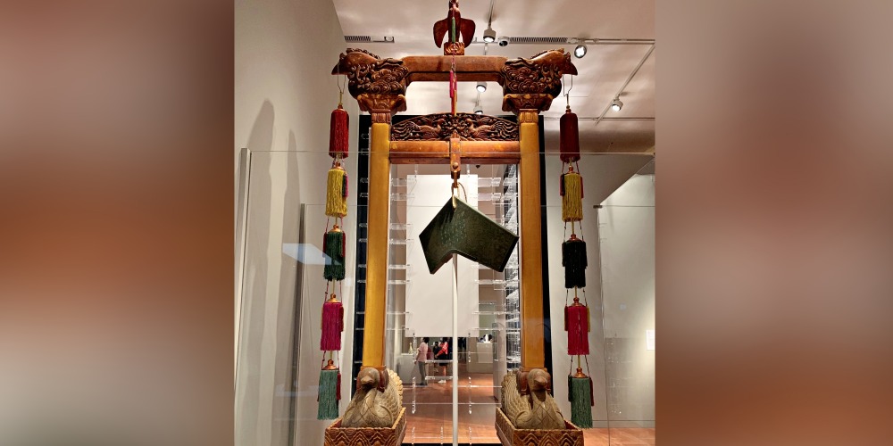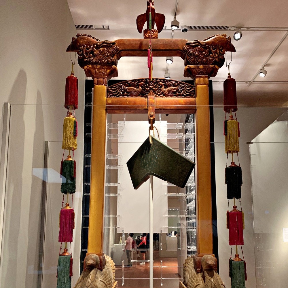 特磬和鎛鐘是儒家禮儀使用的樂器。清代皇帝為鞏固統治,推崇儒學,措施之一便是鑄造特磬和鎛鐘。此磬音律為「黃鐘」,是十二律中第一律,用於農曆十一月舉行的儀式。樂章完結前,會敲擊特磬一次,以示收結。