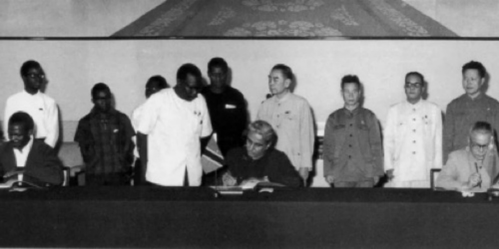 1967年9月5日,中國、坦桑尼亞、贊比亞三國政府代表團在北京舉行會談,會後正式簽署中國援建坦贊鐵路的協定。