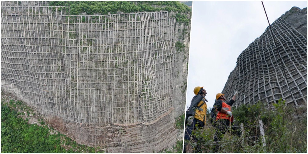 不論是站在山下仰望,還是透過航拍鏡頭觀看,這個防護超級工程都如同為山體峭壁披上厚重的盔甲,整面峭壁的「鋼甲」帶來了極強的視覺衝擊,讓人感到無比震撼。