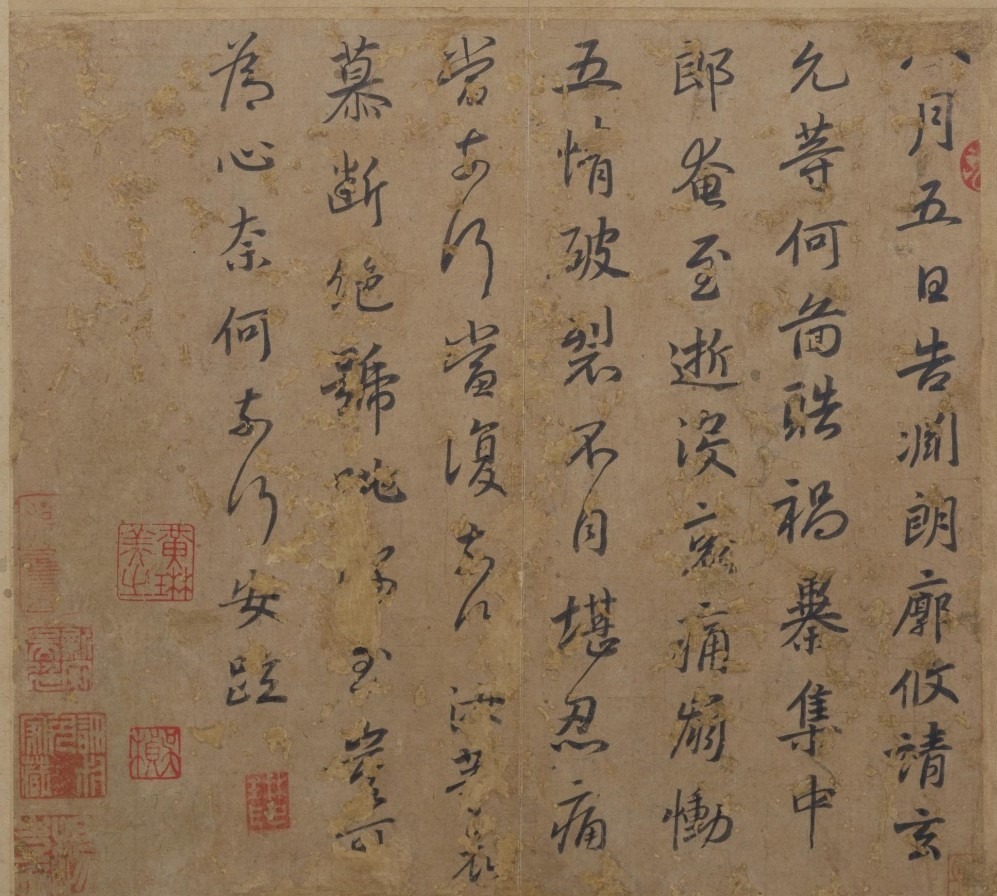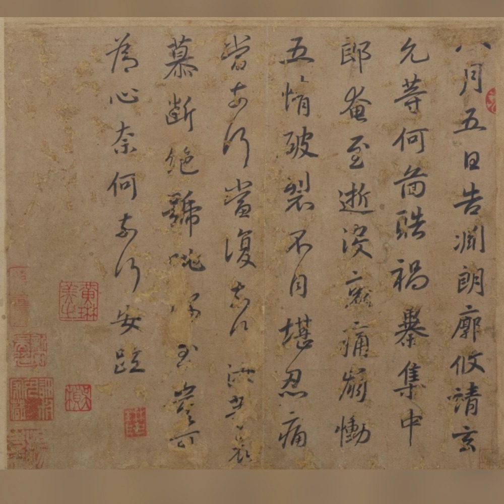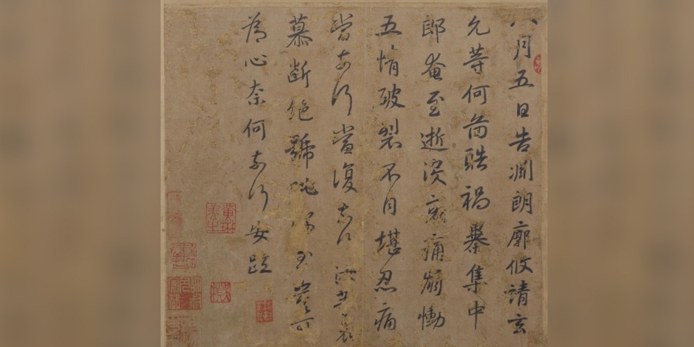 《行書中郎帖》又稱《八月五日帖》,是傳為東晉人謝安書寫的一封報喪書信,信中告知中郎突然去世的消息,同時表達了自己內心無比哀慟之情。