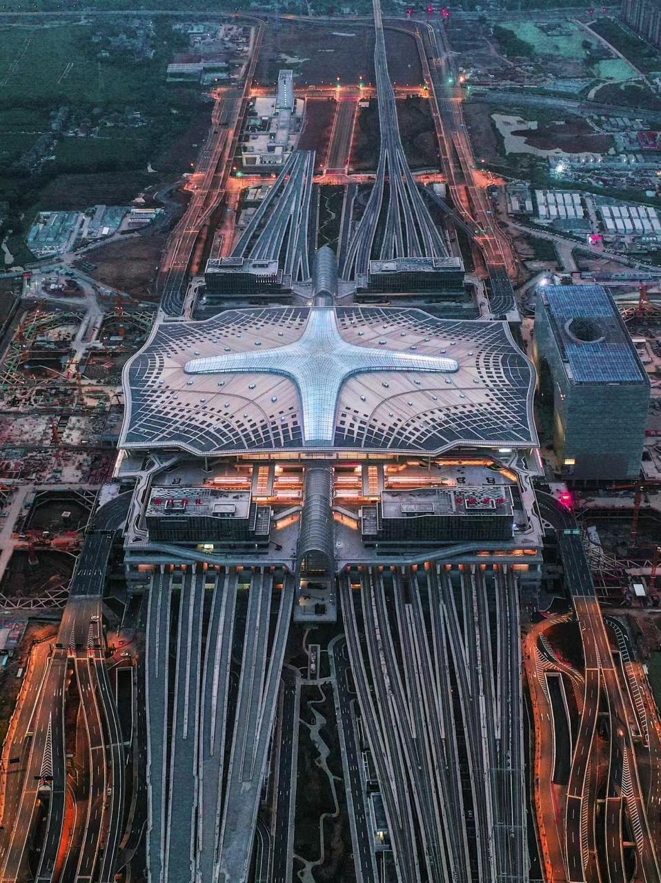 杭州西站採用「雲之城」理念設計,從空中俯瞰,氣勢恢宏,就像一片雲朵。行走其間,猶如漫步在一座未來之城中,充滿科技和夢幻感。