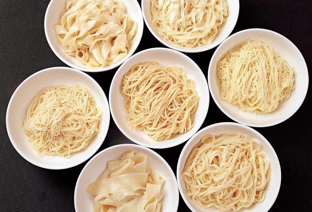 毛細,算是偏幼細的麵條,柔軟易入口,可以不用咀嚼下肚,較受老人和孩子歡迎。一細、二細、三細,就是富有一定彈性的圓麵條,它們之間的直徑僅差0.05cm。韭葉即是扁麵條,小寬比韭葉要寬一點,但兩邊較薄。