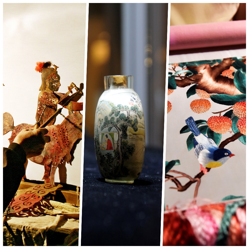 栩栩如生的濟南皮影,聲情並茂的山東快書,精緻華麗的楚式漆器髹飾技藝,簡約精美的苗族蠟染和苗繡……
