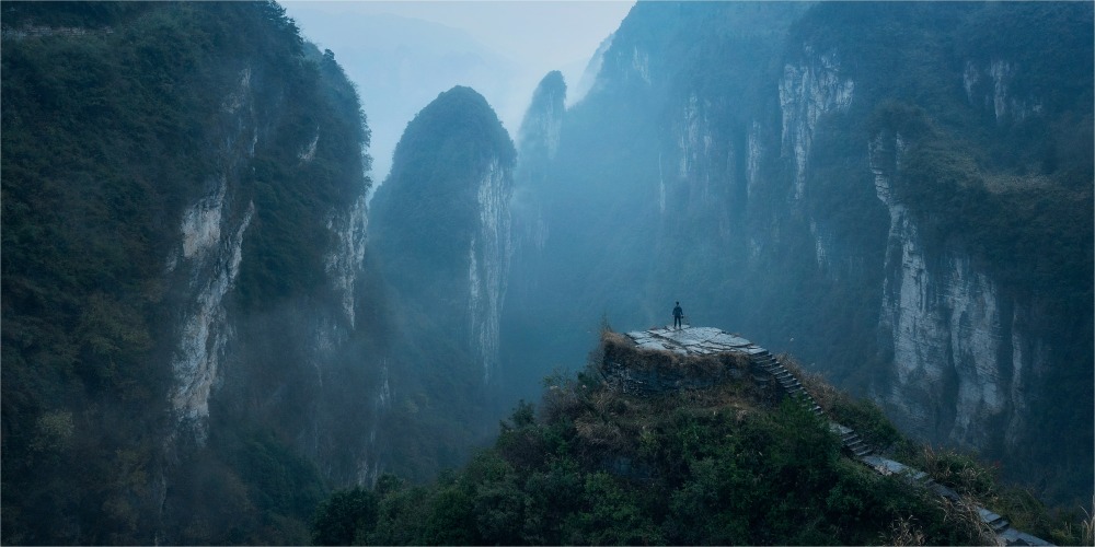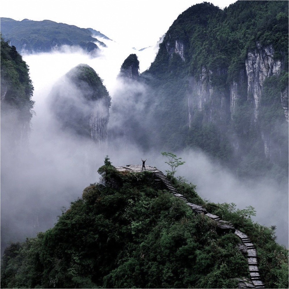 而天問台,相傳正正就是屈原寫下《天問》的地方。天問台四處古木參天,被萬丈深淵所圍繞,站在那裏,仿佛來到了一處無人之境,真的會產生一種能與天對話的錯覺。
