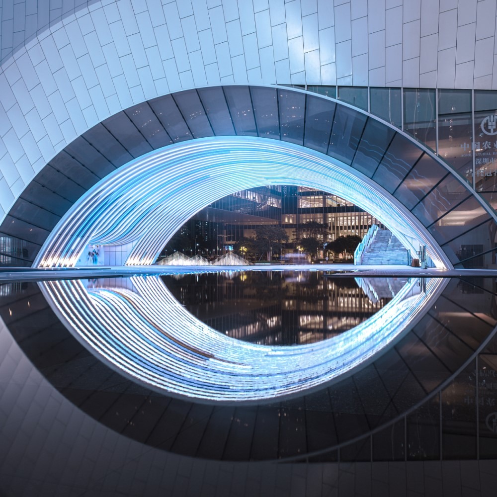 因為門前那「水汪汪」的大眼睛,中心被冠以「光明之眼」的美譽。它不單貌美,亦是「智慧」兼備。它集聚了圖書館等五大文藝功能,優雅的文化氣質令它火速成為打卡熱點,是深圳北新的文化聚腳點。
