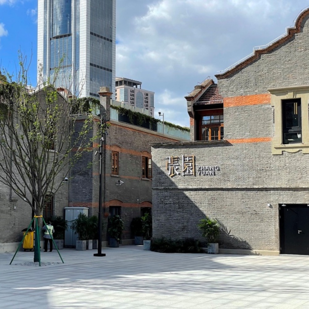張園是無錫富商張叔和購地後建設的私家園林,始於1882年,原名「張氏味蓴園」,1885年開始向遊人開放。到了1921年,張園被劃分為28個地塊陸續出售,由28名業主分別設計建造,是上海現存最完整、種類最多的中後期石庫門建築群。張園的修繕工程分為東西兩區,其中西區17幢建築的修繕工程在2019年率先啟動,東區的26幢建築則尚未開始動工,處於保護、看護階段。