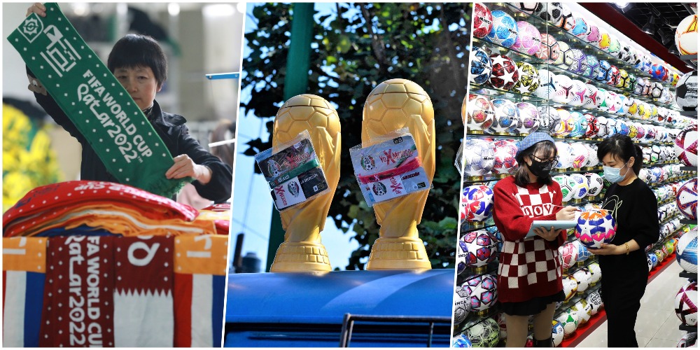 為了全力趕工,迎接卡塔爾世界杯,最近義烏就有商家在50天內趕製出10萬個足球。還有人每日加工三、四千座「大力神」杯、上萬枚獎牌。