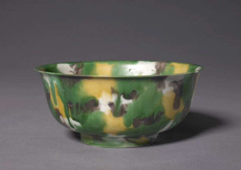 老虎元素除了應用在軍隊中,在皇室用品上也能看得到,這套來自清朝的「康熙虎皮三彩碗」 ,黃、綠、紫三色與白色的釉點,形成如虎皮圖案的斑塊狀,因此也被稱為「虎皮釉」。